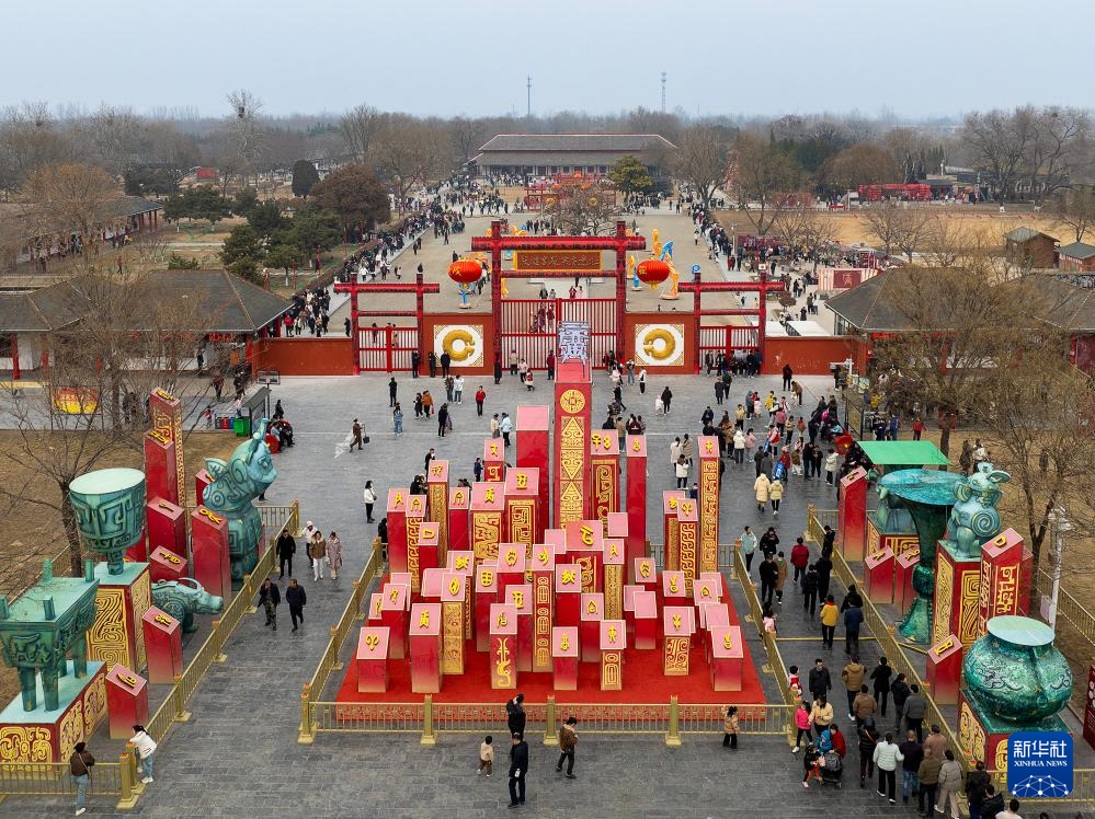 2月14日,游客在安阳市殷墟宫殿宗庙遗址参观游览(无人机照片)。新华社发 (麻翛然 摄)