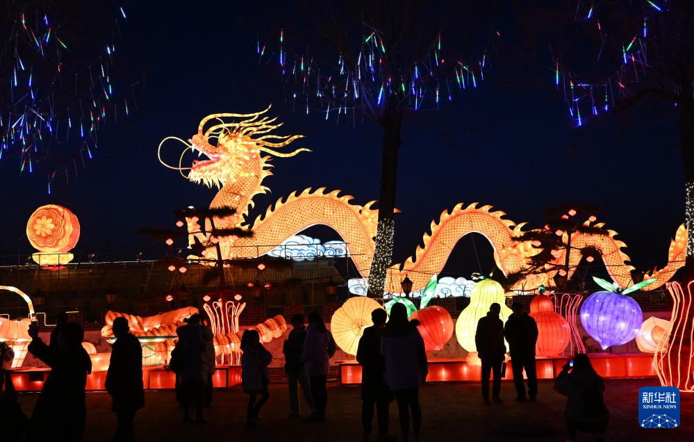 2月12日,游客在三门峡陕州地坑院龙年灯会上参观游园。新华社记者 朱祥 摄