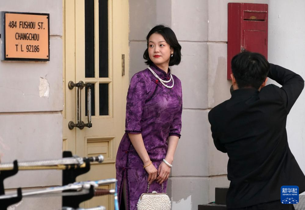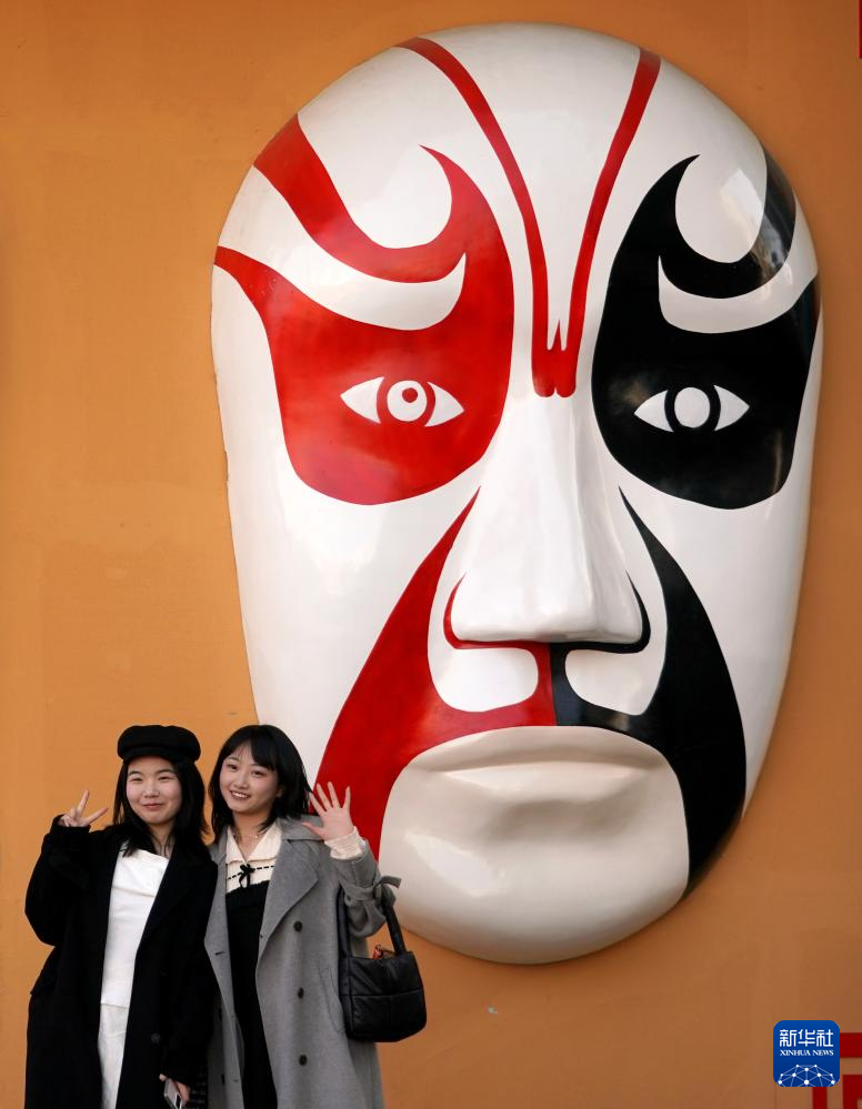 2月16日,游客在位于郑州市中牟县的电影小镇拍照。新华社记者 李安 摄