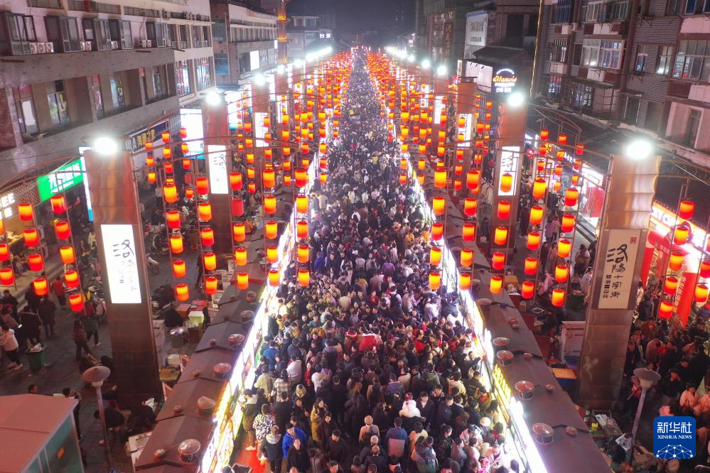 2月12日,洛阳市老城十字街游人如织(无人机照片)。新华社发(张怡熙 摄)