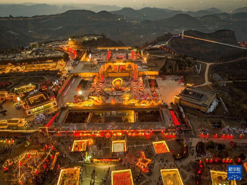 这是2月12日拍摄的三门峡陕州地坑院龙年灯会(无人机照片)。新华社发(杜杰 摄)