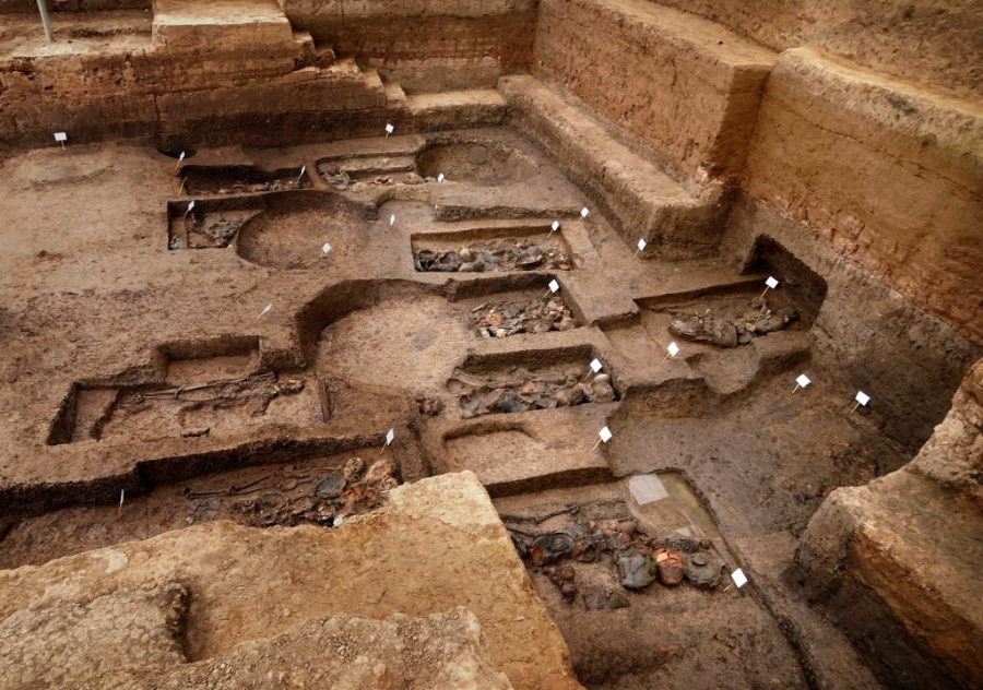 朱光华说,此前很少见此类葬俗,初步推测同组墓葬间墓主或存在一定的亲缘关系,目前已提取部分墓葬的古DNA样本送检,具体结论尚需分析证实。