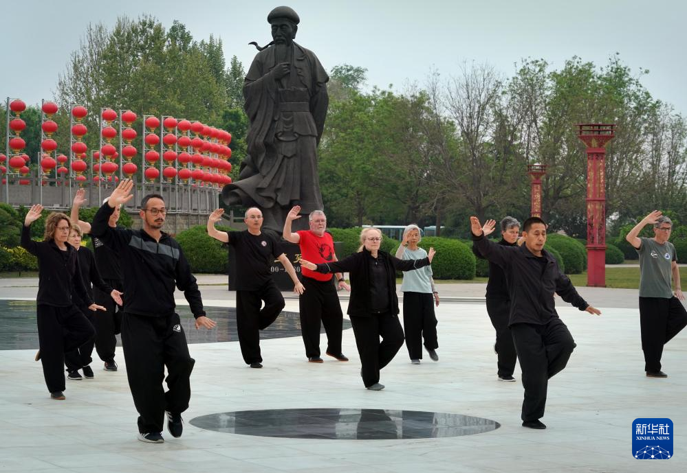 在河南省温县陈家沟,18位法国学员在习练太极拳,金刚捣碓、单鞭、白鹤亮翅……一招一式都松柔慢匀,开合有序。