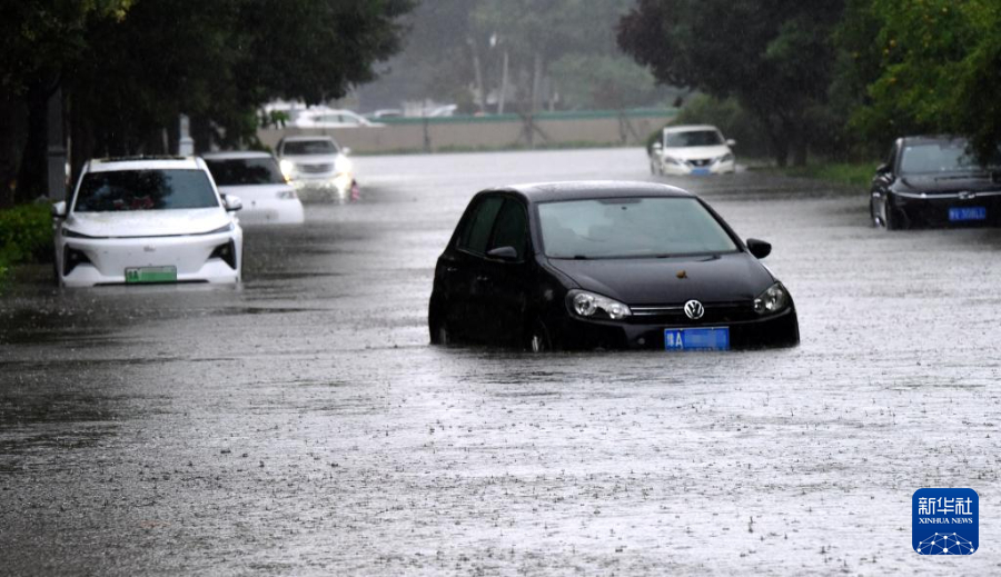 7月8日,在郑州东四环,车辆在水中抛锚。新华社记者 朱祥 摄