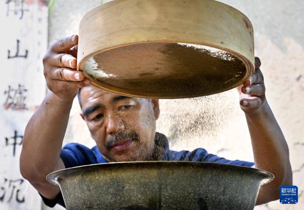 张书芳在准备进行筛粉步骤的工具(7月3日摄)。新华社记者 李安 摄