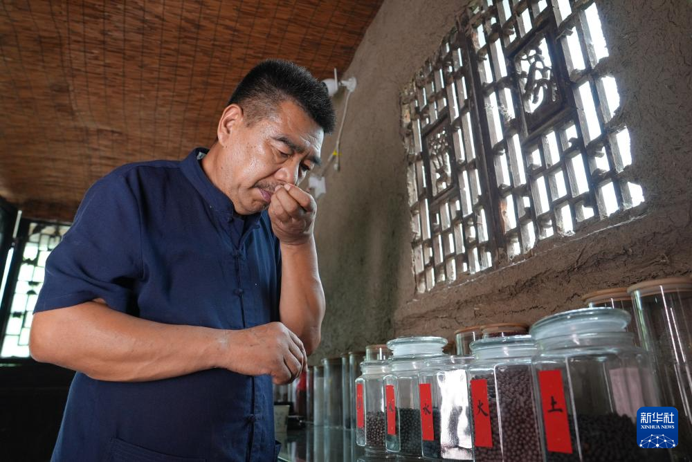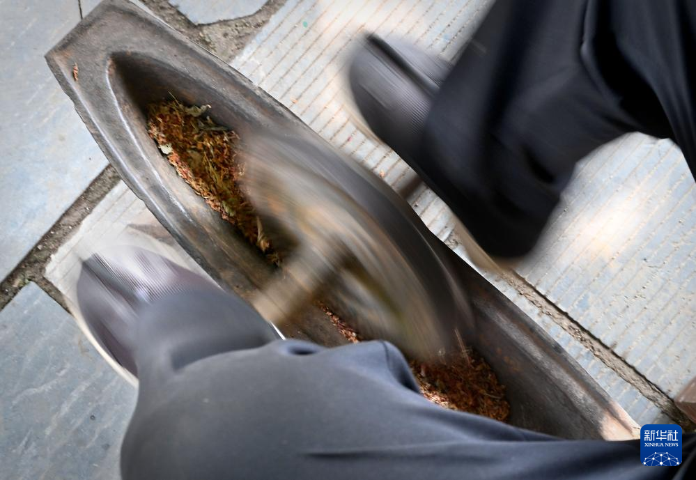 张书芳在研磨香料(7月3日摄)。新华社记者 李安 摄