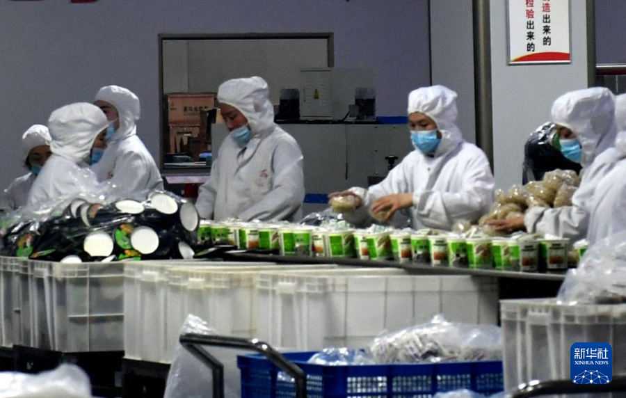 2月27日,工人在河南省温县一家休闲饮品企业生产流水线作业。新华社记者 朱祥 摄