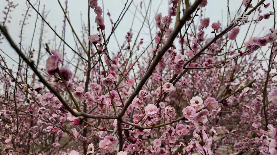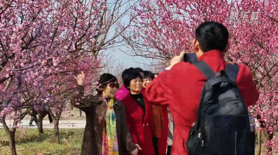 春日里,郑州市惠济区黄河滩地公园黄河梅园中的梅花次第开放,如云似霞,春意盎然。众多赏花的游客纷纷前来打卡。