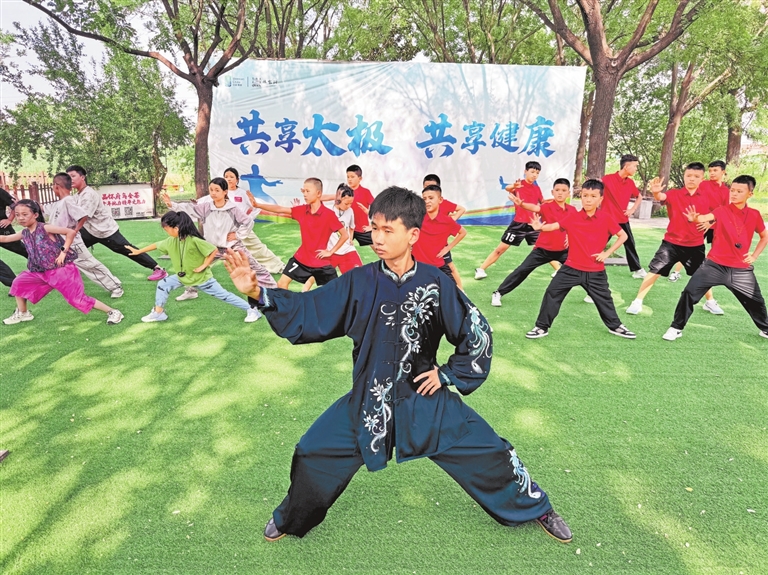参加夏令营的哈密青少年在焦作温县学习太极拳。本报记者 李悦 摄