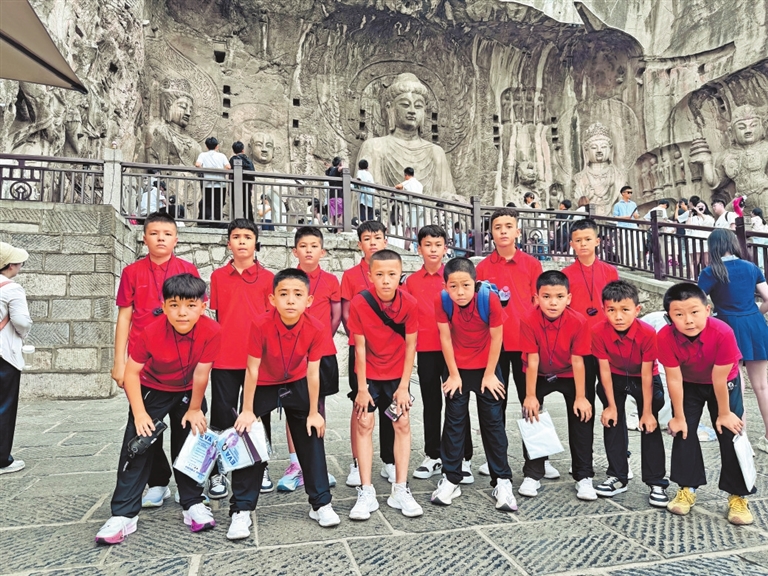 参加夏令营的哈密青少年参观洛阳龙门石窟。本报记者 李悦 摄