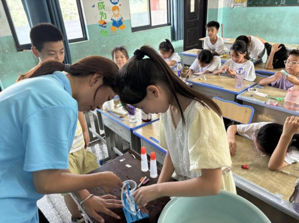 近日,华北水利水电大学水资源学院“小水花”实践队走进中小学校园,开展暑期水利科普实践活动。