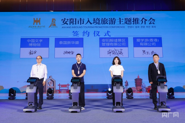 在安阳市入境旅游主题推介会上,安阳市文化广电体育旅游局局长刘洁华发布了“汉字溯源·文明寻根”之旅、“山水诗画·运动休闲”之旅、“古都夜宴·烟火人间”之旅3条入境旅游精品线路。中国文字博物馆、殷墟景区、太行大峡谷等文旅单位与境外旅游机构、企业现场签订了6个合作项目。