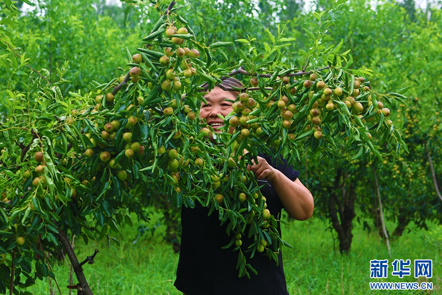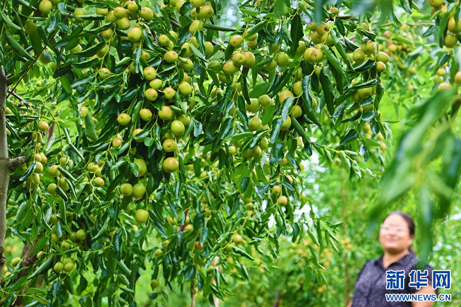 初秋时节,在河南省南阳市社旗县下洼镇兰庄村郭庄冬枣采摘园内,即将成熟的冬枣缀满了枝头,圆润饱满、色泽鲜亮,一派喜人景象。