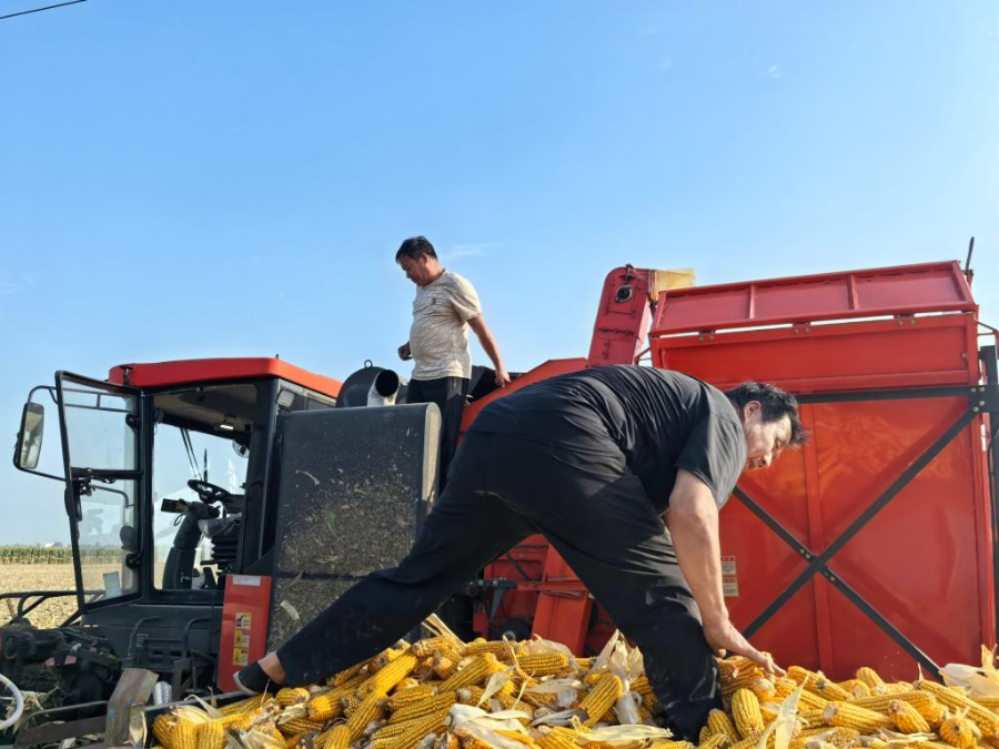 河南新乡县今年玉米种植面积达24.1万亩。位于当地七里营镇的永昌家庭农场负责人马文昌正穿梭于玉米地间,利用国庆期间晴好天气调度玉米收割机抓紧作业。