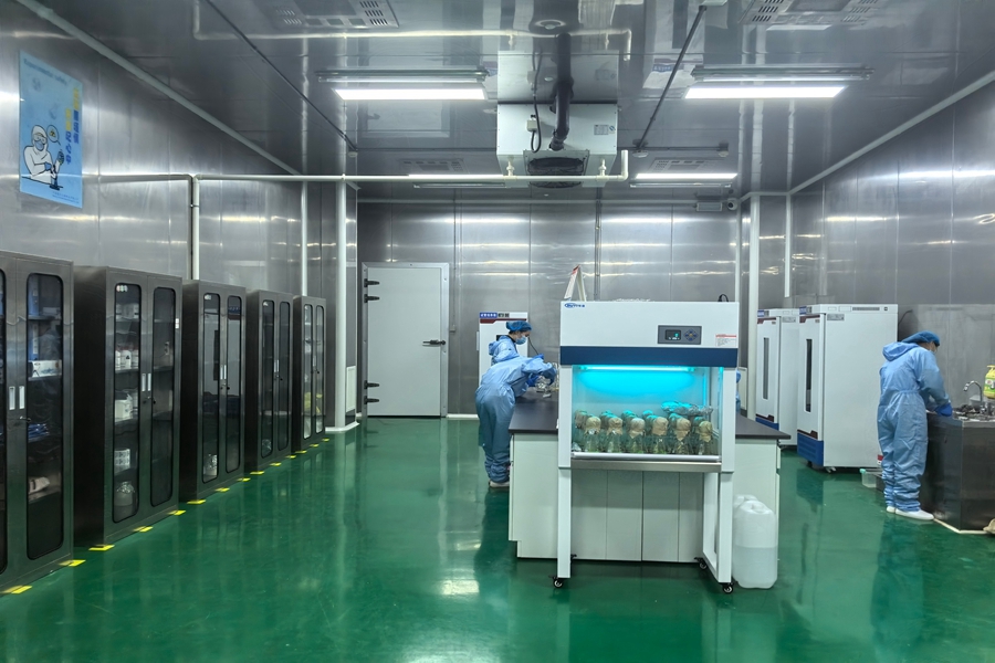 图为食用菌生产厂房内的标准化实验室。
