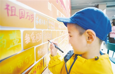 据记者了解,本次活动由VR穿越、故事倾听、誓言留言3个部分组成。在VR穿越体验活动中,参与者戴上VR眼镜,回到硝烟与战火纷飞的抗战年代,体验革命先辈保家卫国的艰辛;在“故事倾听”环节,市民朋友可以通过观看“豫见国防·80位抗战老兵影像展”,感受抗战历史与现代公共空间的巧妙融合;在“誓言留言”环节,参与市民可以用五彩水笔在卡纸上留下自己对祖国的深情祝福,并亲手贴在“万里长城”的展板之上(如图)。