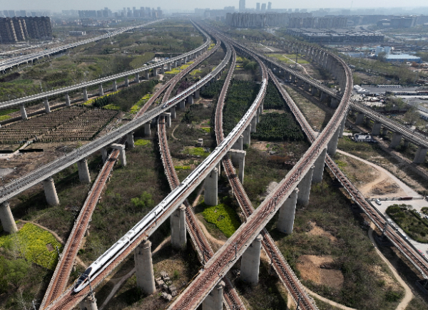 2025年3月31日在河南省郑州市拍摄的纵横交错的高铁线路(无人机照片)。新华社记者 李嘉南 摄‌