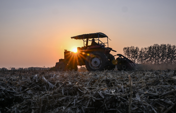 2025年10月22日,在河南省商丘市夏邑县会亭镇,农民驾驶旋耕机在田间作业。新华社发(王高超 摄)