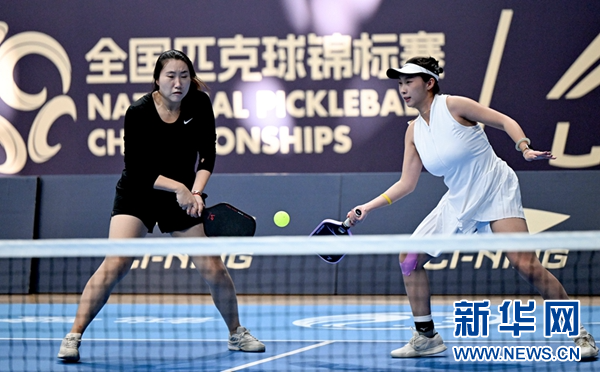 9月25日,2025全国匹克球锦标赛在河南省鹤壁市开赛。图为安徽代表队组合卢泽宇(左)/查汶含在女双比赛中。新华社记者 朱祥 摄