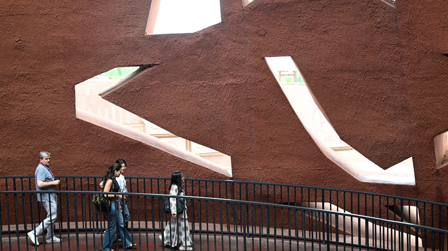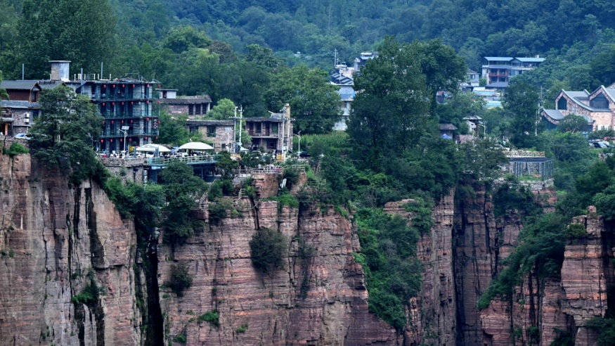 新华社照片,郑州,2025年8月17日 8月16日,游客在河南万仙山景区郭亮村一处观景平台上参观。